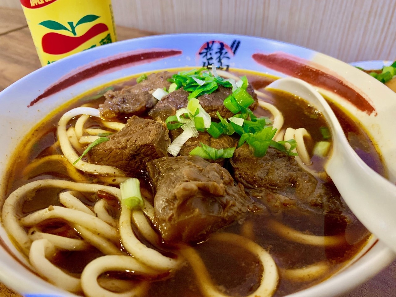 高中時期,大家都為著升學的目標前進,這種生活難免枯燥乏味,下課後進K書中心讀書前的晚餐時刻,我相信是每一個高中生一天的小確幸,那時的我,最喜歡去老袁牛肉麵點一碗大碗的雜醬麵配上一罐蘋果西打,就可以讓自己乏味的生活增添一些味道,而出了社會之後,我只要有經過市區,常常就是一碗牛肉麵、一盤小菜、一罐蘋果西打,就可以讓自己回味當初的那個自己。