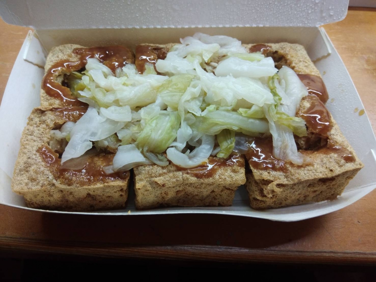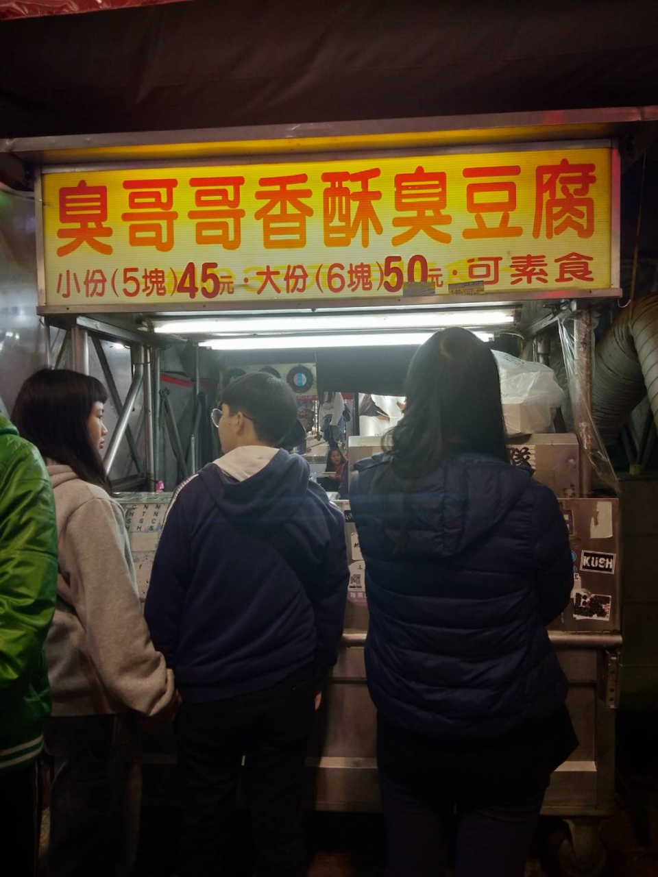 遠渡重洋的外國人普遍都不敢嘗試這臭得驚人的美食,其實臭豆腐很美味的,它外酥內軟的多重口感,當淋上醬油後像極和豆腐跳上一首華爾滋舞步也不為過,最精華的部分就是搭配上酸甜兼具的金黃泡菜,舌尖的味蕾都感受到它們在漫舞優游其中