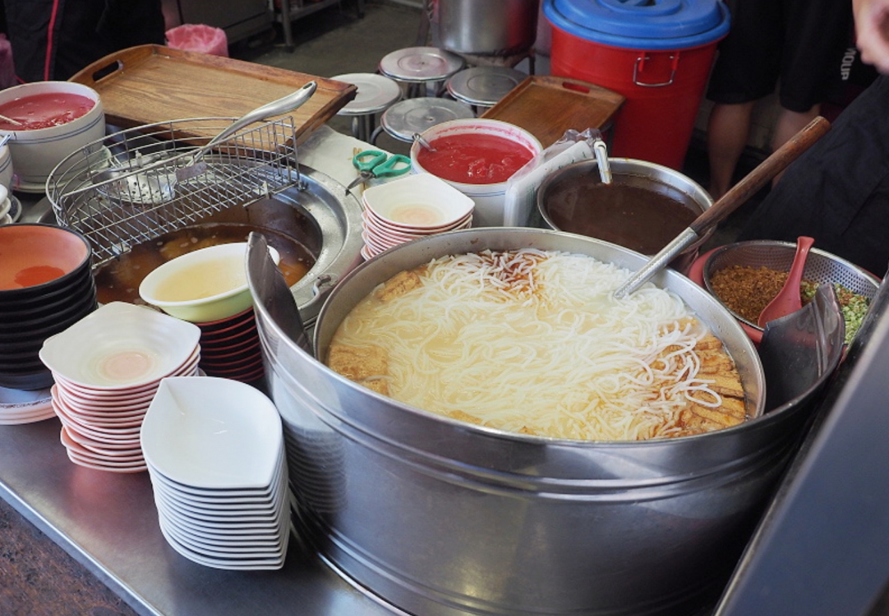 米粉湯是台灣古早味美食,粗粗的看起來貌似鹹的米苔目,我比較喜歡粗米粉有嚼勁的口感,加一點辣椒,喝幾口熬製的大骨清湯,再咬一口油豆腐,滿滿小時候的味道,有時候商家也會有一些黑白切,是一道簡單又令人回味的美食。