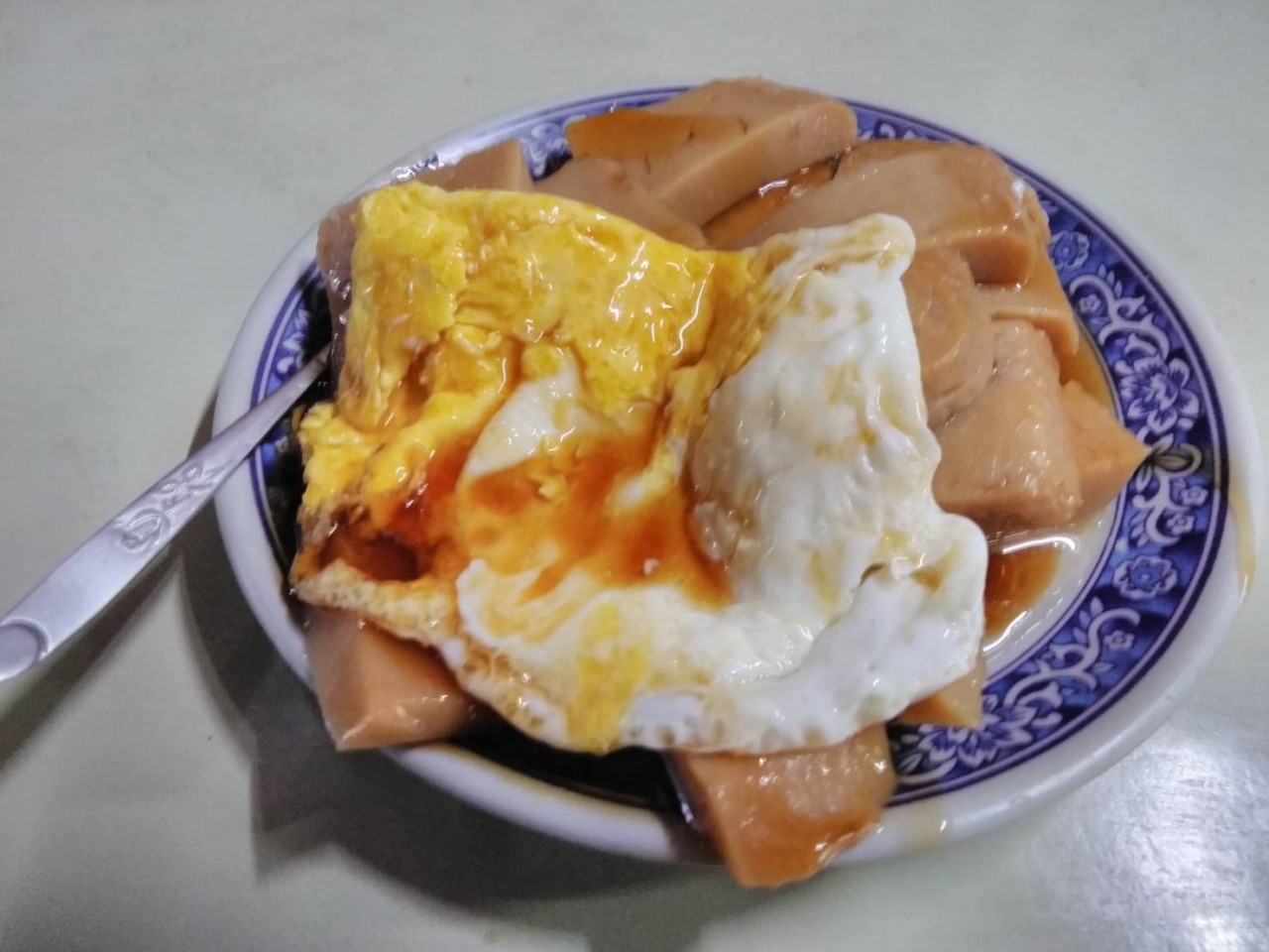 外酥內綿、滑嫩帶Q的油蔥粿再加上一顆半熟土雞蛋,那誘人的好滋味令人難以忘懷