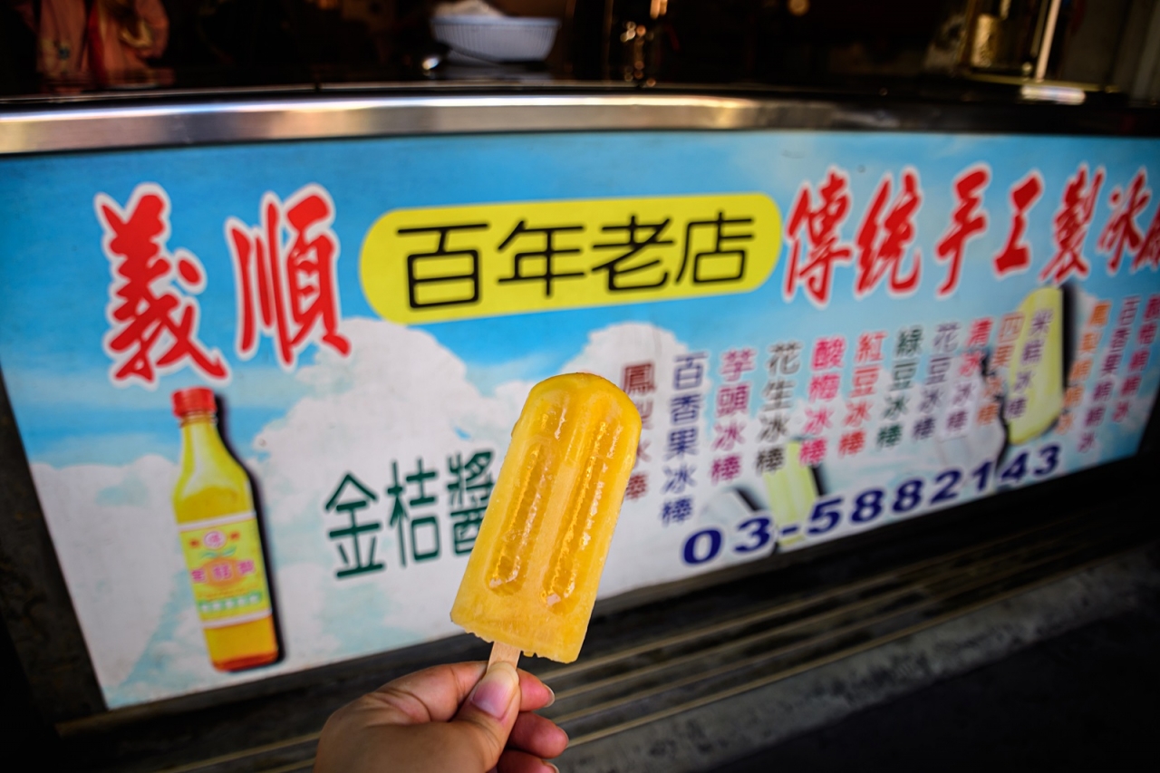 話說回來我們就到義順製冰廠買了金桔招牌冰棒,一咬下去,酸酸甜甜,我這怕酸的人覺得好吃到不行,旁邊本來不想吃冰的朋友看我表情就決定買下了,真的好吃,有機會歡迎來到新埔吃看看喔!一支12元,非常便宜又道地的台灣味!