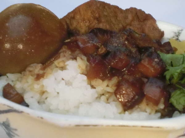 滷肉飯可說是一道歷久不衰的庶民美食。在光復初期,由於當時物資缺乏,「肉」可說是飯桌上的奢侈品,除非逢年過節,否則平時想吃到肉類的佳餚實在是很不容易。而在當時,由於豬頸肉到豬耳朵的部位比較便宜,因此民眾偶爾會買這些部位的豬肉回家,並且配上醬油、紅蔥頭及五香粉來滷製。此外,由於這部位的豬肉份量不多且難以均分,因此便切成肉絲及肉丁再加以滷製,如此一來,全家人便可以「均分」並享用到美味的滷肉。一鍋熱騰騰、香噴噴的滷肉及滷汁,淋在香Q彈牙的米飯上,可以說是當時一般民眾最頂級的享受了,而這道庶民美食——滷肉飯也因此誕生。