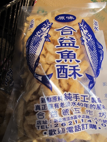 老闆張鴻山先生從1960年代就在淡水的老街上,開始做魚酥生意,從20歲做到現在,雖然魚酥的口味會隨著大眾的喜好做調整,但是手工製作,卻是張老闆不變的堅持。 合益魚酥的樣子呈不規則條狀,組織較密,吃起來很酥但比較油,我很喜歡這口感跟香味 每次去淡水老街,一定會帶上幾包回家慢慢嗑,真的是一口接一口吃不停!!